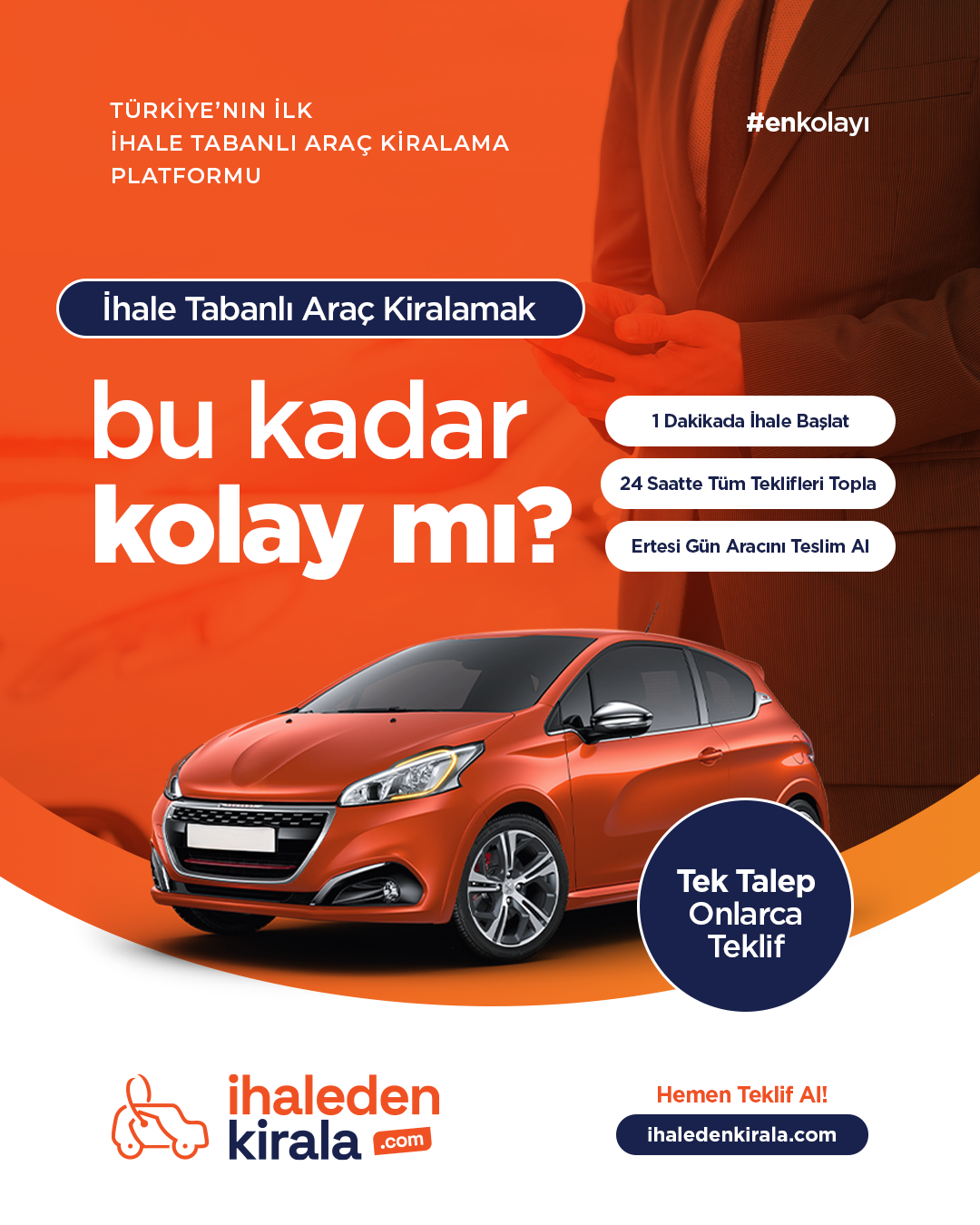 Araç kiralama ihtiyaçlarınızın çözümü için ihaledenkirala.com’un web paneli üzerinden pratik şekilde ihale açabiliyor ve onlarca teklifi sadece 24 saatte en şeffaf haliyle topluyorsunuz.